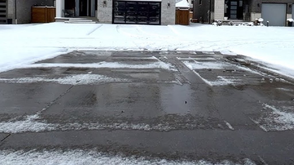 Обігрівається бетонна доріжка площею 40,6 м² обладнана п’ятьма 240-вольтовими кабелями для сніготанення різної довжини з автоматичним контролером.